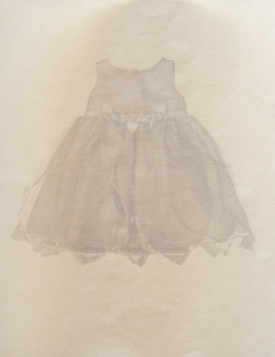 Her Dresses, one series within The Small Years project, features small, delicate prints of my daughter's childhood dresses, rendered in subtle pale tones that are barely there, on thin, translucent Japanese paper that itself will wrinkle and buckle as it is handled, fragile and faded, like lingering ghosts of childhood memories.
